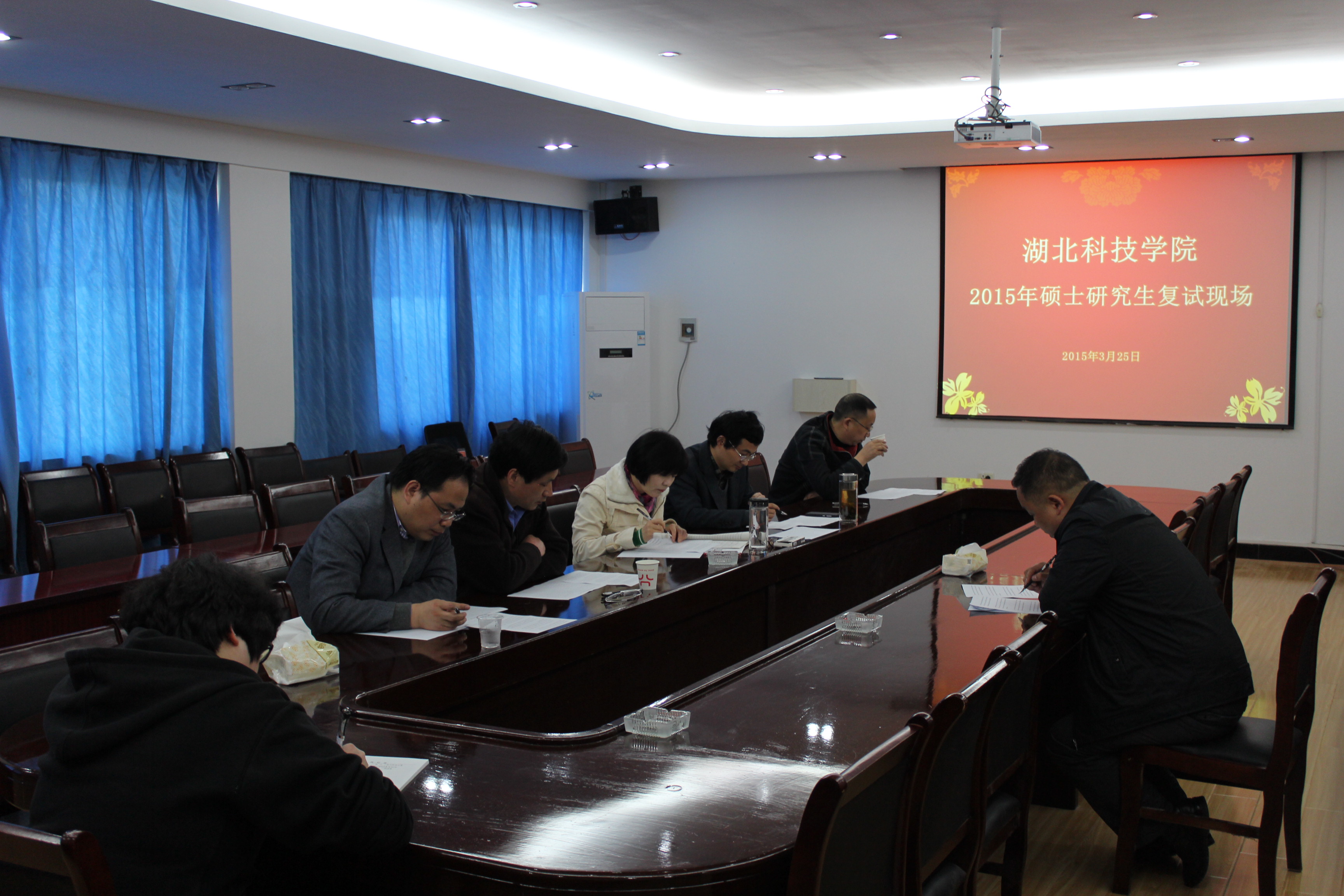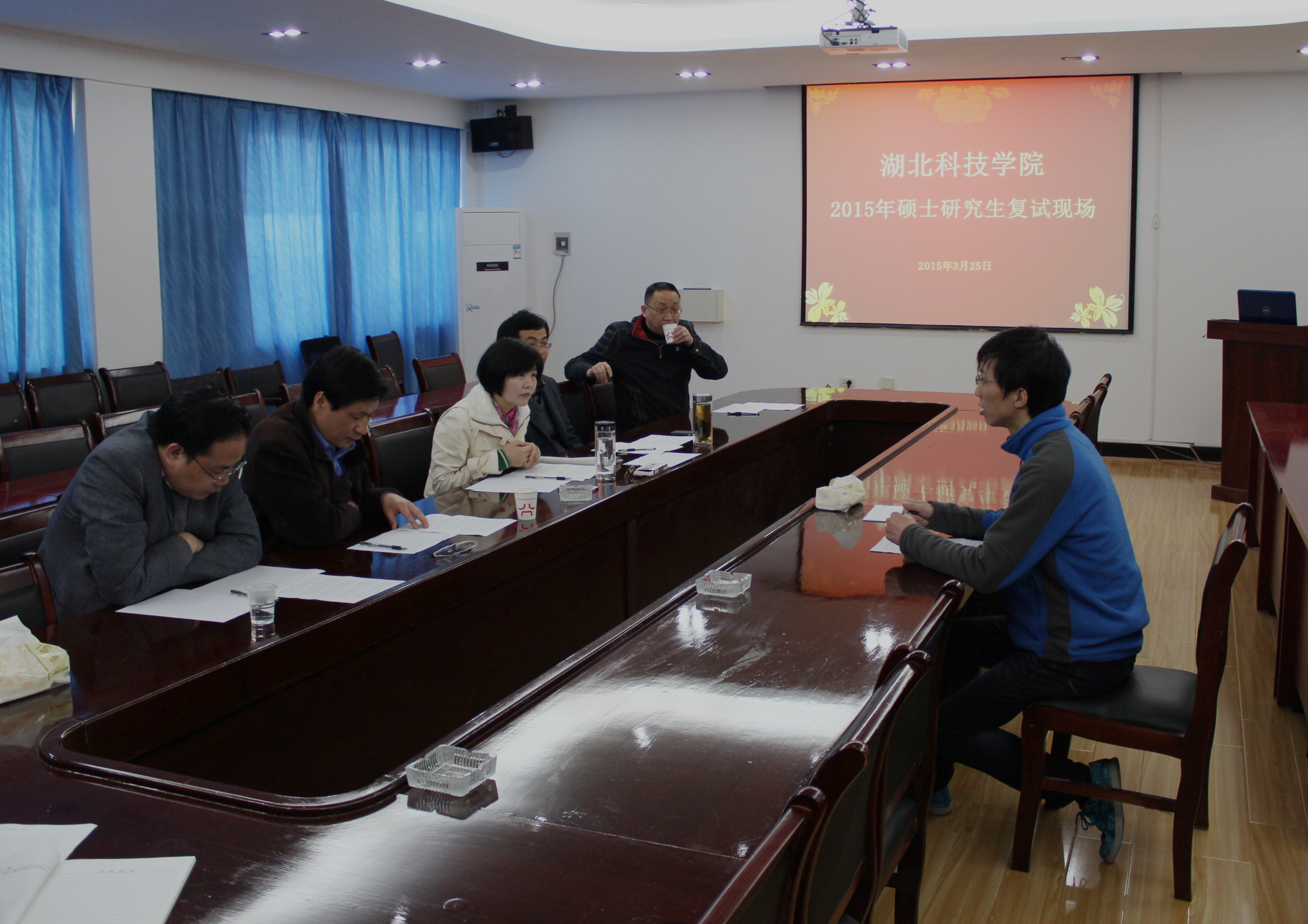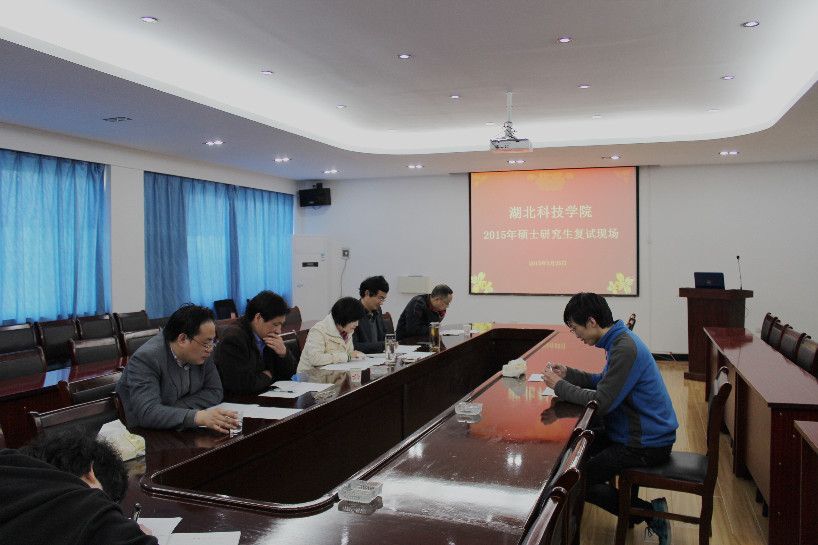 2015年3月25日 星期三,一年一度的研究生复试在beat365正版唯一官网必一院会议室举行。面试老师由沈定文、闵清、胡旺平等领导班子组成。