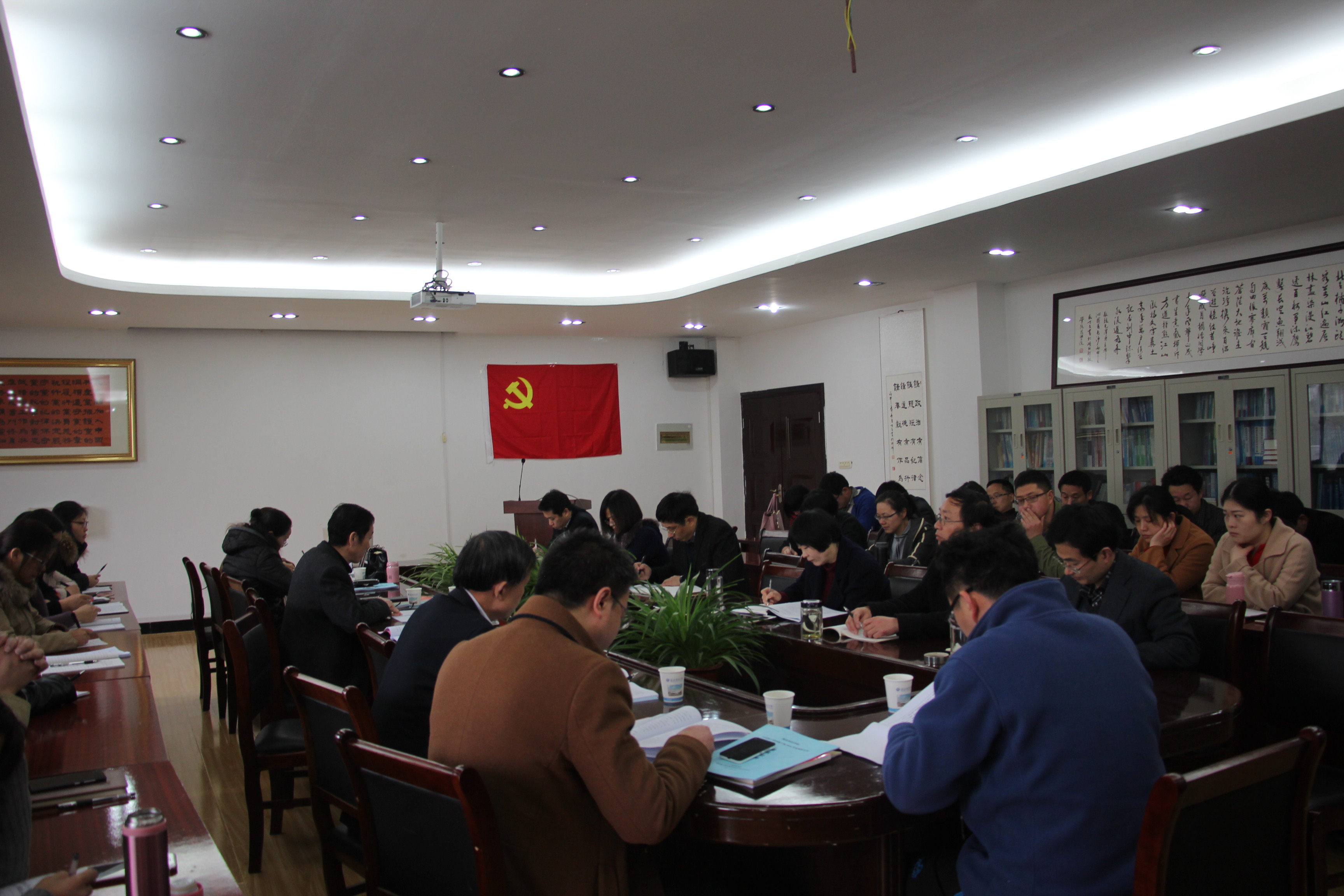 本网讯 3月28日上午8:30,学校中层班子和领导干部2016年度履职尽责考核小组来到beat365正版唯一官网必一党总支,对beat365正版唯一官网必一党总支八位处级干部进行考核,考核会议由学校纪委监察处副书记杨益明同志主持。