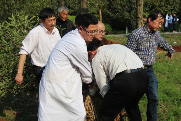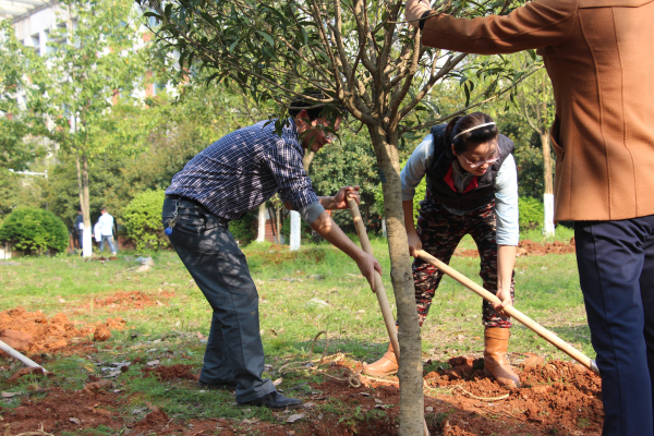 完成座谈会的议程后,药化药分党支部党员和民盟学院总支盟员在药学楼前空地一起开展了义务植树活动。在后勤集团绿化科同志的指导下,全体同志挖树坑、抬树苗、浇水,干得热火朝天,接连种下了桂花和红叶石楠树苗6颗。通过此次活动,增强了大家保护校园环境的责任感和环保意识。而且,有效加强了药化药分党支部党员和民盟盟员间的沟通和了解,提高了beat365正版唯一官网必一团队的协作能力,增强党的凝聚力。共同义务植树活动,种下的是树苗,播撒的是友谊,希望它们生根发芽、枝繁叶茂,收获和谐美好的果实。