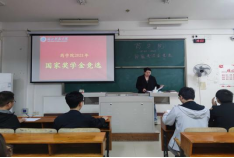 会议第一项,全体起立奏唱国歌,主持人宣布竞选大会正式开始,并介绍了本年度国家奖学金评选出嘉宾评委。会议第二项,由高银杏老师宣读2021年国家奖学金评选文件及通知。会议第三项,由吴思婷老师宣读评测标准及现场环节测评比例。