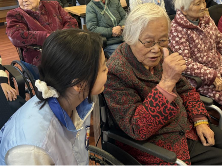 每次活动的尾声,总是充满温情与感动。志愿者们与老人们一起合唱《茉莉花》《映山红》等跨越时代的经典歌曲。年轻的嗓音与历经沧桑的吟唱交织在一起,旋律勾起了老人们的美好回忆,不少老人随着节奏轻轻拍手,眼泛泪光,脸上洋溢着幸福的笑容。歌声超越了年龄的界限,搭建起心灵沟通的桥梁,让活动现场沉浸在一片温馨、欢乐的海洋中。