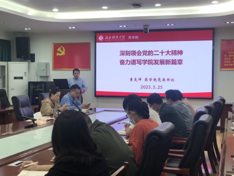 李炎坤在党课中回顾了党的二十大基本情况,阐述了党的二十大报告精神实质,提出了奋力谱写学院发展新篇章的愿景和路径。他指出,党的二十大选举产生了以习近平同志为核心的新一届党中央领导集体,科学擘画了新征程的宏伟蓝图,广泛汇聚了亿万人民的创造伟力。当前,全党上下深入开展学习贯彻习近平新时代中国特色社会主义思想主题教育,是贯彻落实党的二十大精神的重大举措。beat365正版唯一官网必一党员、干部要以深入开展主题教育为契机,坚持以学铸魂,坚定政治信仰;坚持以学增智,提升干事本领;坚持以学正风,转变工作作风;坚持以学促干,推进学院发展。要以国家一流专业建设为抓手,提升专业建设水平,以申请药学专硕授权点为抓手,提升学科建设水平,以高质量党建引领学院各项事业高质量发展。最后,他号召全体党员干部要不忘初心、牢记使命,在立德树人中展现新作为;要谦虚谨慎、艰苦奋斗,在争创一流中干出新业绩;要敢于斗争、善于斗争,在作风建设中体现新担当;要团结一心、携手共进,在学院建设中创造新辉煌。