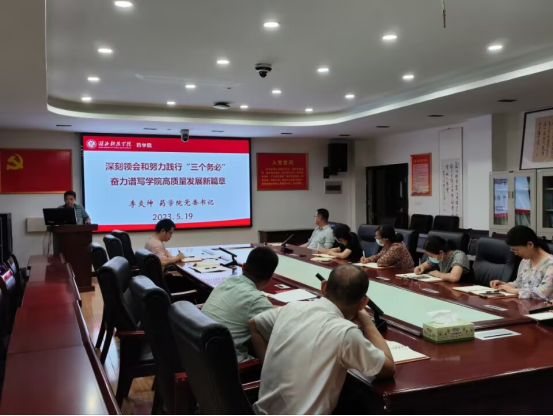 5月19日下午,beat365正版唯一官网必一药分药化党支部开展5月份主题党日活动,活动上,学院党委书记李炎坤同志以“深刻领会和努力践行‘三个务必’奋力谱写学院高质量发展新篇章”为题,为全体支部党员讲专题党课。