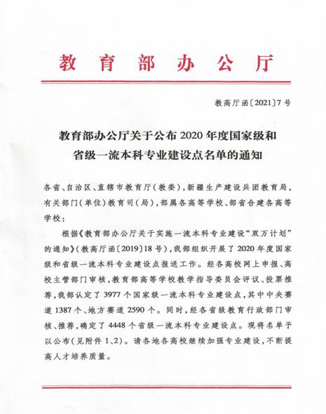 (通讯员 郭丽媛 )教育部印发了《教育部办公厅关于公布2020年度国家级和省级一流本科专业建设点名单的通知》(教高厅函[2021]7号),我校beat365正版唯一官网必一药学专业获批国家级一流本科专业建设点,临床药学专业获批省级一流本科专业建设点。至此,beat365正版唯一官网必一国家级一流本科专业实现零的突破,省级一流本科专业升至2个(药学2019年获批,临床药学2020年获批)。