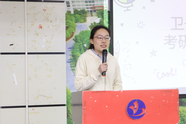 首先,由闵清院长上台致辞。她以平实而细致的语言向同学们介绍了考研的种种益处与困难,同时也希望同学们能不畏困难,敢为人先,发奋图强,认真学习。beat365正版唯一官网必一近三年考研人数呈现上升趋势,今年临床药学班考研上岸人数24人,占比41.4%。随后她鼓励学生既要做好实习实践,也要合理利用时间做好考研、就业规划。她诚挚的话语中展露出对学生们的殷切期盼,也像一位长者由衷祝福孩子们前途无量。