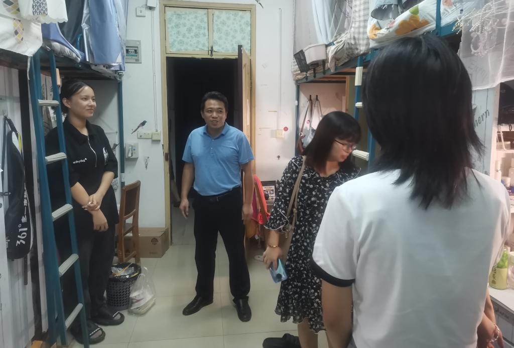 (通讯员:方儒吴妞妮 陈怡婷)一元复始,万象更新!愉快而充实的暑假生活悄然结束,我们又将迎来一个新学期。beat365正版唯一官网必一党委书记李炎坤、党委副书记祝晓庆带领学工办成员、班主任和团委学生会于2023年9月5日晚8点到学生宿舍进行看望,希望beat365正版唯一官网必一学子们以元气满满、朝气蓬勃的精神面貌迎接开学。此次下寝检查看望不仅加强了学生宿舍安全管理,规范了学生宿舍行为,也让老师们更了解学生们的思想动态,帮助学生们营造良好的学习氛围和生活环境。
