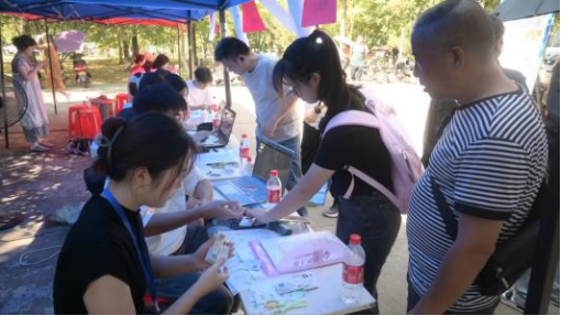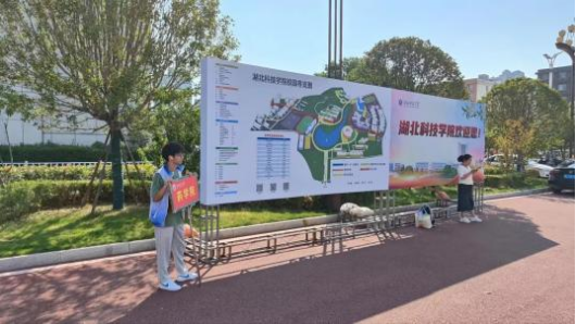 迎新的第一天,接待的新生源源不断,大部分的志愿者在午休时间仍选择留在岗位上,尽量不耽误新生报到。他们的勤恳付出,不仅锻炼了自己迎接了揽月湖畔的新主人,也向各位家长、社会各界展示了湖科学子积极向上、乐于奉献的良好精神风貌。