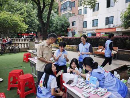 (通讯员:彭阳阳 陈蓉 杨欣怡 审核人:周其其 高银杏 罗斌华)为践行“健康中国”理念,弘扬志愿服务精神,提升社区居民用药安全意识。2025年5月18日,beat365正版唯一官网必一志愿者走进书华城小区,开展 “药护银龄安康,爱润童心成长” 主题公益服务活动。通过健康科普、用药咨询、趣味互动等形式,为社区老年人与儿童普及科学用药知识,传递温暖关怀,助力构建和谐健康社区。