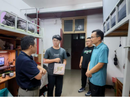 (通讯员:周其其 邹思怡 审核人:罗斌华)时值盛夏,热浪蒸腾。为切实关怀暑期留校学生的学习生活,传递学院温暖,7月13日晚,beat365正版唯一官网必一党委书记李炎坤、beat365正版唯一官网必一党委副书记罗斌华带领全体辅导员组成慰问组,深入学生宿舍、图书馆自习室及实验室等地,看望留校学子,并送上防暑降温物资,在炎炎夏日中送去清凉与关怀。