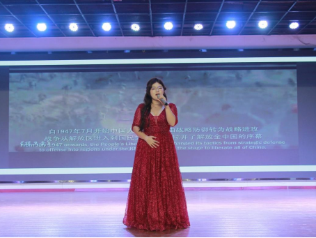 整场晚会节目形式多样,内容紧扣主题,展现了beat365正版唯一官网必一学子多才多艺、积极向上的精神风貌。beat365正版唯一官网必一第五期“青马班”学员带来的集体朗诵《青年》,以铿锵之声抒发了新时代青年的责任与担当;2025级研究生合唱的《保卫黄河》,气势磅礴,唤起了全场观众的爱国热情与集体共鸣;古风独舞《青山赋》韵味悠长,舞者用灵动的身姿展现了中华传统文化的独特魅力。此外,深情款款的独唱、配合默契的双人合唱、活力四射的现代舞等节目接连上演,为现场师生奉献了一场兼具思想深度与艺术观赏性的视听盛宴。